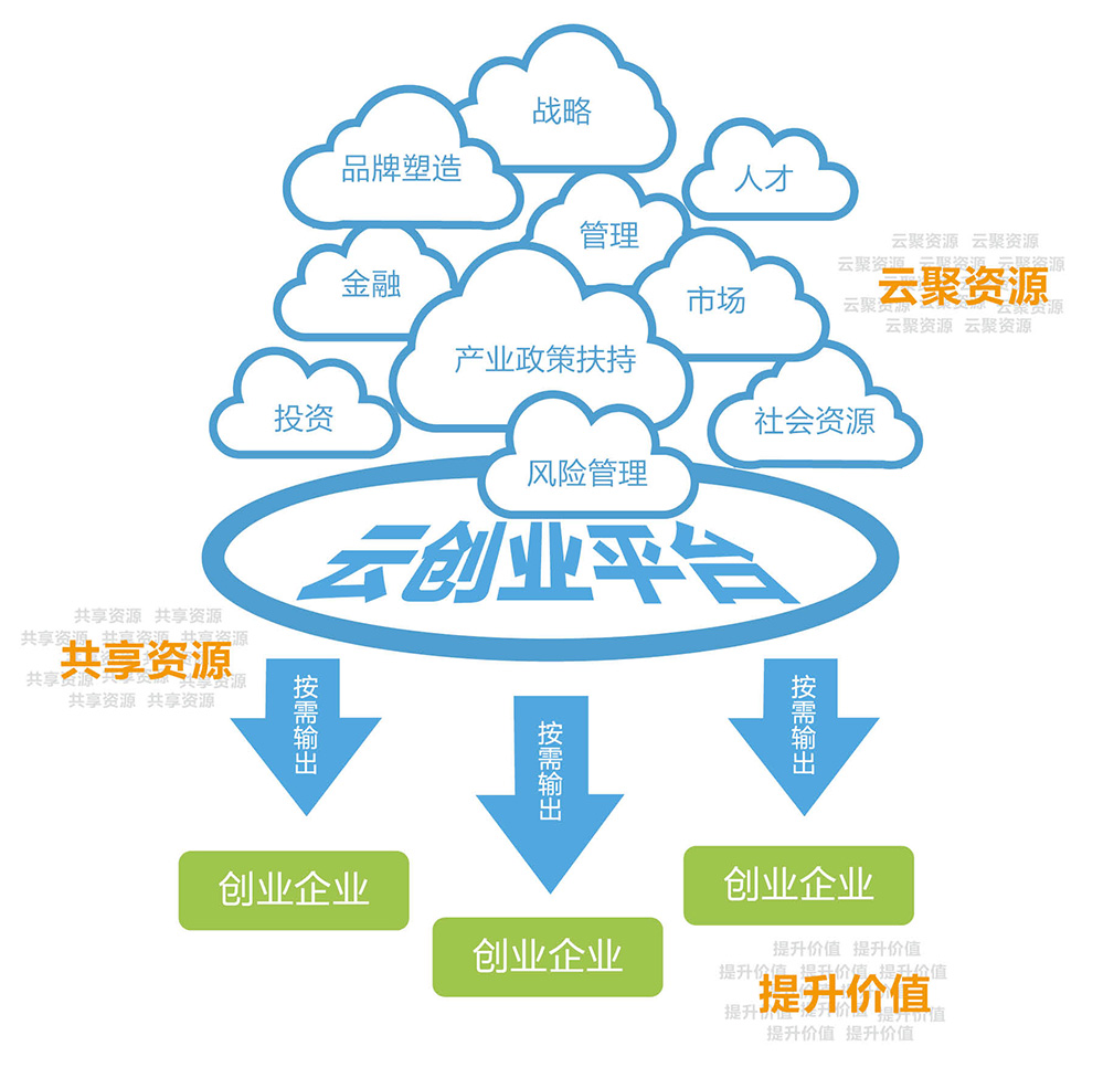 云創(chuàng)業(yè)模式精髓在于打造一個完善的、成長潛能強(qiáng)大的云創(chuàng)業(yè)生態(tài)圈,系統(tǒng)化地解決創(chuàng)業(yè)難題,為創(chuàng)業(yè)者提供全創(chuàng)業(yè)價值鏈整合平臺運營服務(wù)。