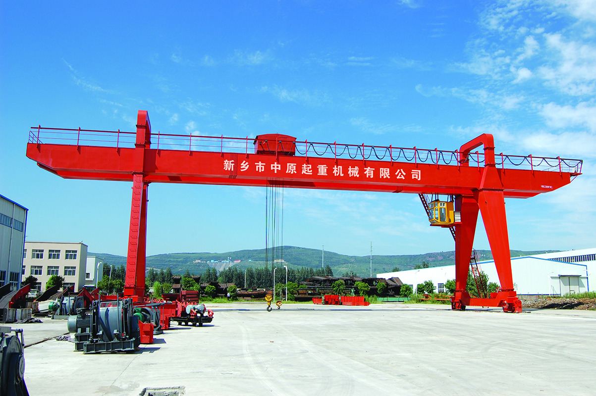 它的金屬結(jié)構(gòu)像門形框架,承載主梁下安裝兩條支腳,可以直接在地面的軌道上行走,主梁兩端可以具有外伸懸臂梁。