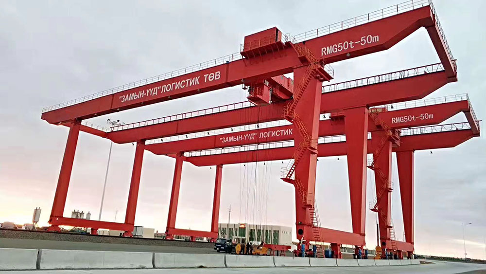 它的金屬結構像門形框架,承載主梁下安裝兩條支腳,可以直接在地面的軌道上行走,主梁兩端可以具有外伸懸臂梁。